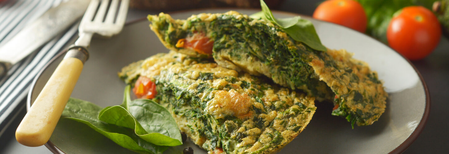 - Bake the omelette in the oven for up to 12 minutes until the eggs are set. Then take it out and cool for about five minutes. Cut into portions and serve with some wholegrain bread.